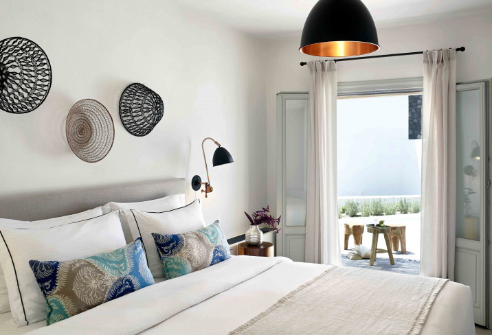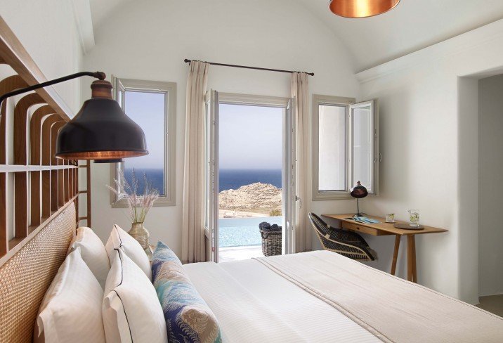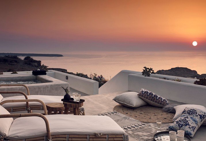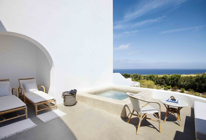 Bypass Oia’s caldera coach loads and bed down in Santo Maris Oia Luxury Suites & Spa, which occupies a peaceful patch of the world’s most Instagram'd sunset-spot, overlooking the Aegean. The hotel is just a five-minute walk away from Oia’s buzz, although you wouldn’t know it when you’re stretched out by the peaceful pools, enjoying leisurely breakfasts – honey pancakes, perhaps – or ticking off ocean-inspired treatments in the quiet spa. A bleached-white colour scheme lets the sea and sky do the talking; shots of colour come courtesy of copper accents, grey-green doors and woven rugs with whorls of blue.