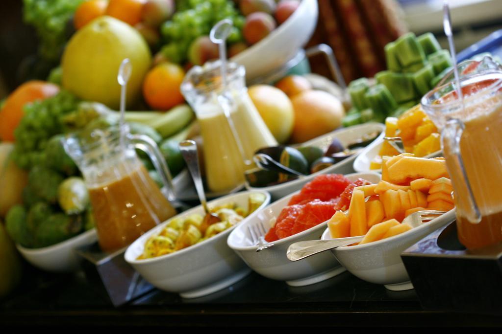 Traditional Israeli food is served outdoors in the popular King's Garden restaurant, just one of Hotel King David's 4 dining facilities.