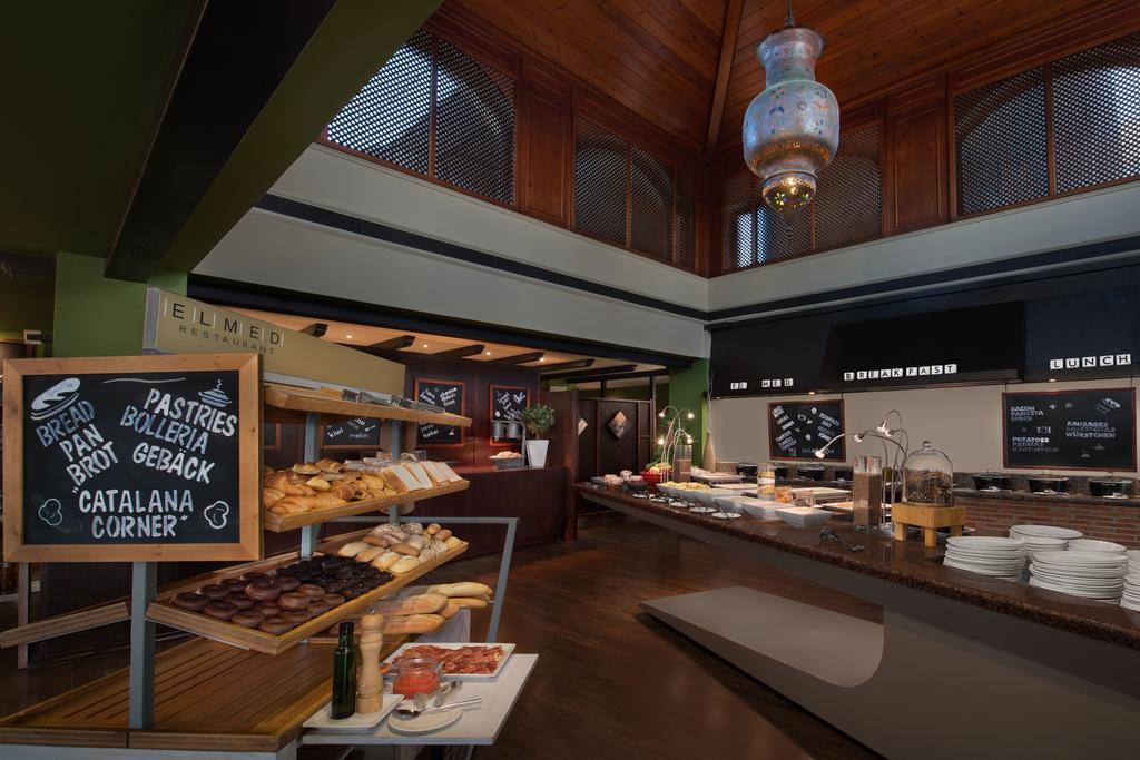The complex offers several restaurants and bars including the seasonal El Med Terrace restaurant and Beachside Grill. There is also a supermarket on-site.