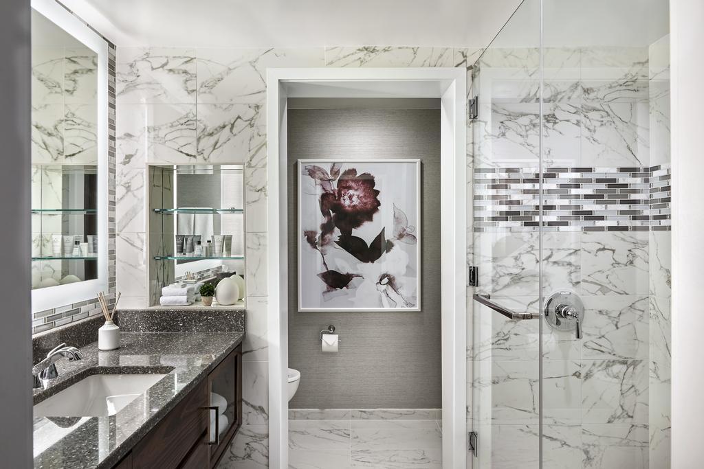 All luxurious rooms at JW Marriott San Francisco Union Square have a large LDC TV with premium film channels, a work desk with an ergonomic chair and a coffee machine. Rooms include an in-room safe, a marble bathroom and guest robes.